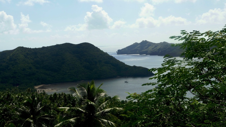 We went on a hike over the hill to the next bay, so this is the view of Allora tucked in the anchorage.