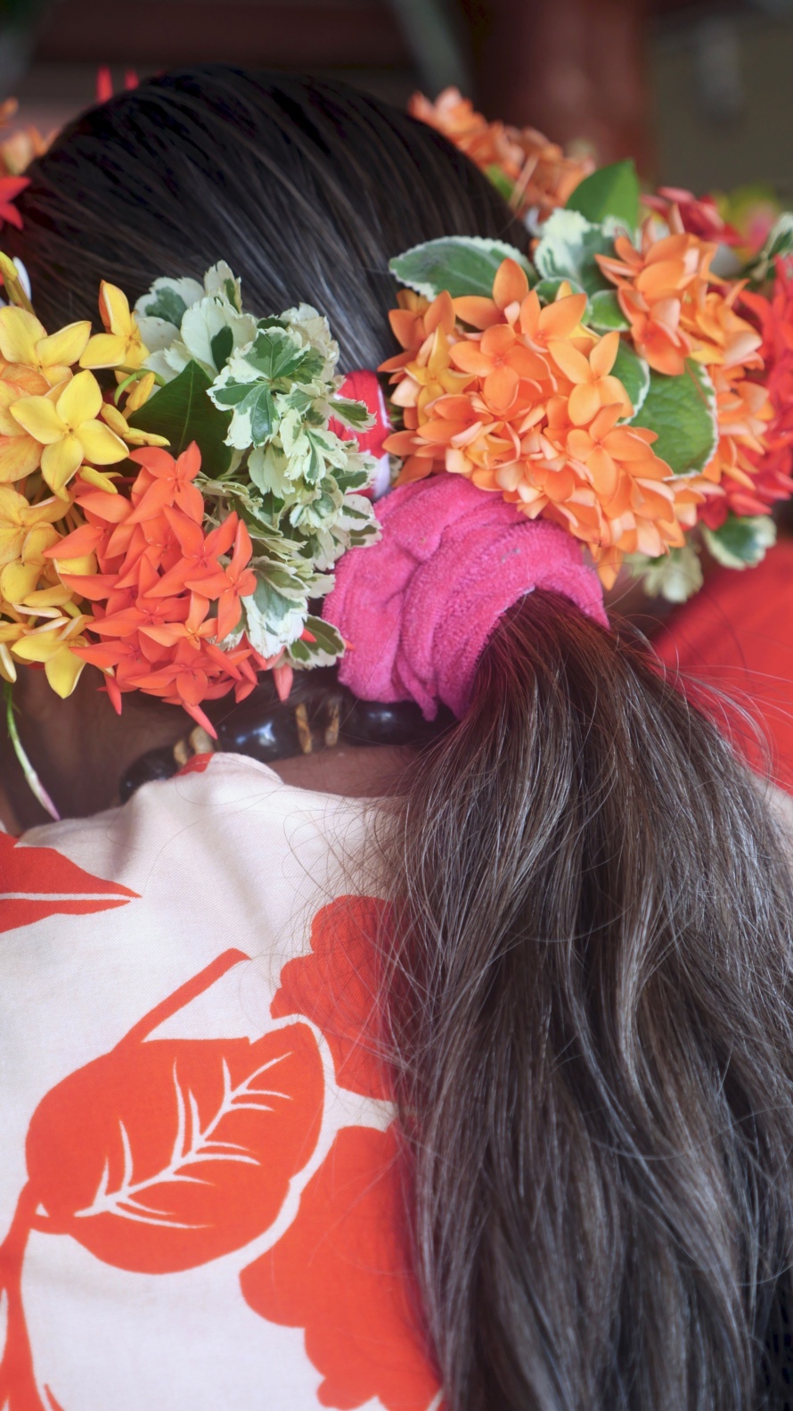 Previous ImageNext Image Fete des Meres, Taiohae, Nuku Hiva, Marquesas They wear flowers, not only for festivals.