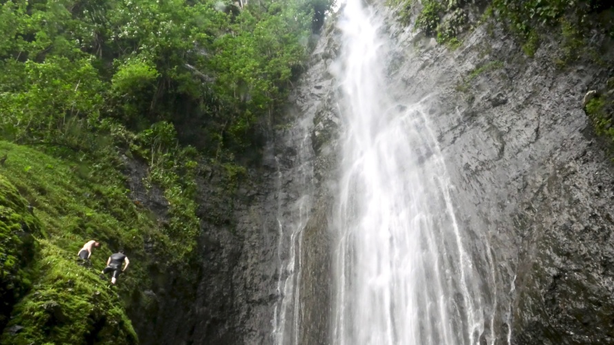 Short hike to these falls up behind the village in Fatu Hiva. Wyatt and a guy we called the Marquesan Joseph Gordon Levitt hiked up a slippery slope to jump into the cascade’s pool.